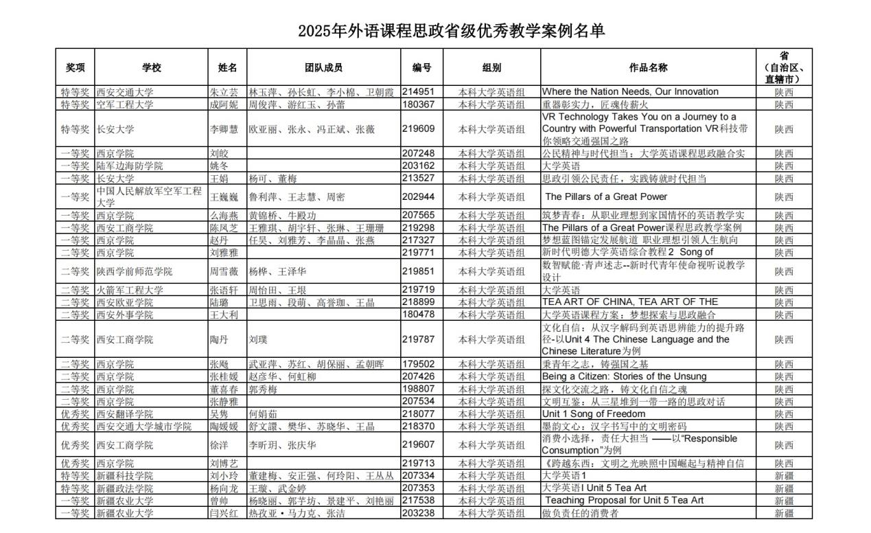通识教育学院教师陈凤芝、王雅琪、胡宇轩、张琳(信工院)、王珊珊(马院)组成的教师团队获得“本科大学英语组”省赛一等奖;陶