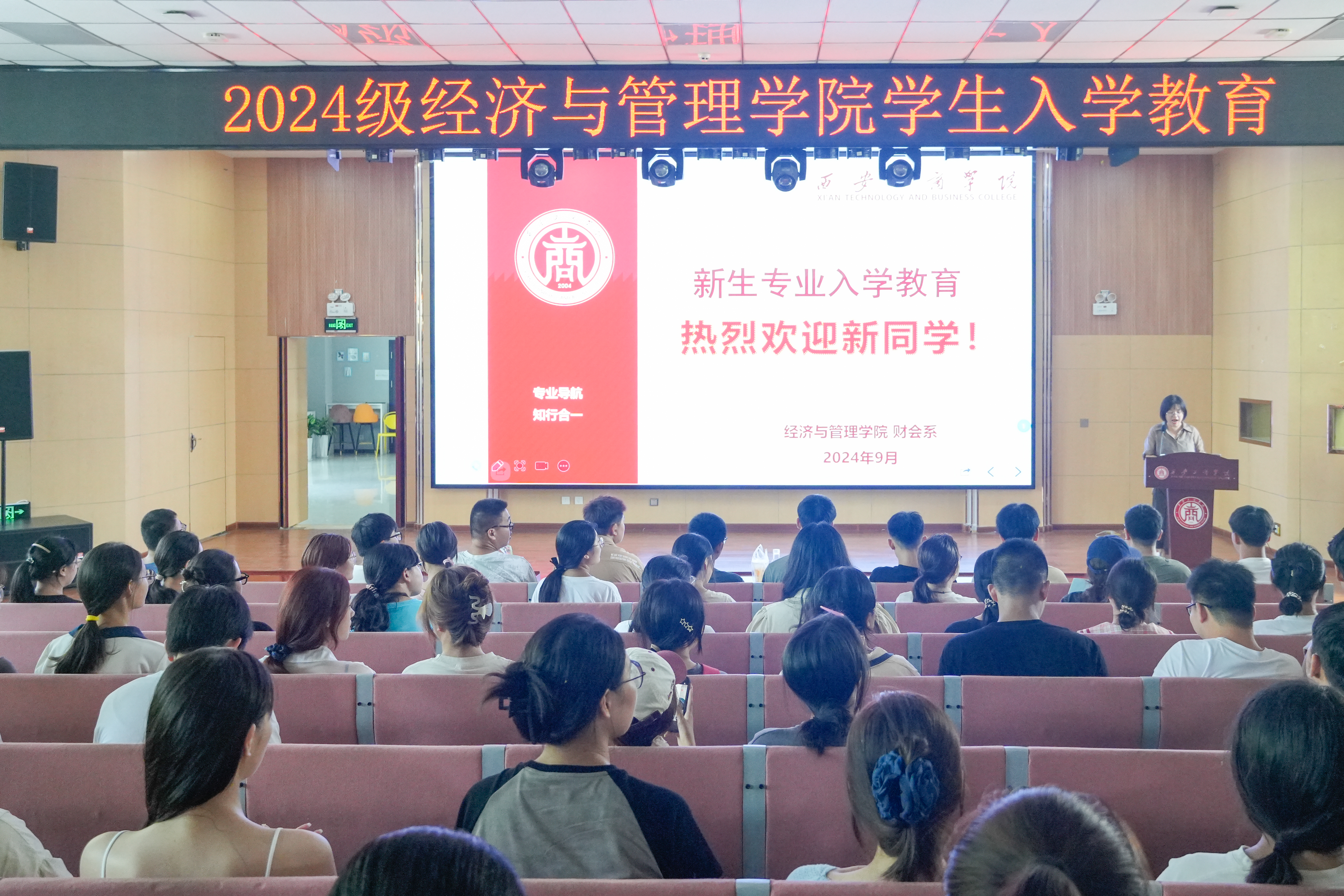 西安工商学院迎来了一批满怀梦想与憧憬的大学本科新生,经济与管理学院在学术报告厅及教学楼分场次召开了2024级新生入学专业