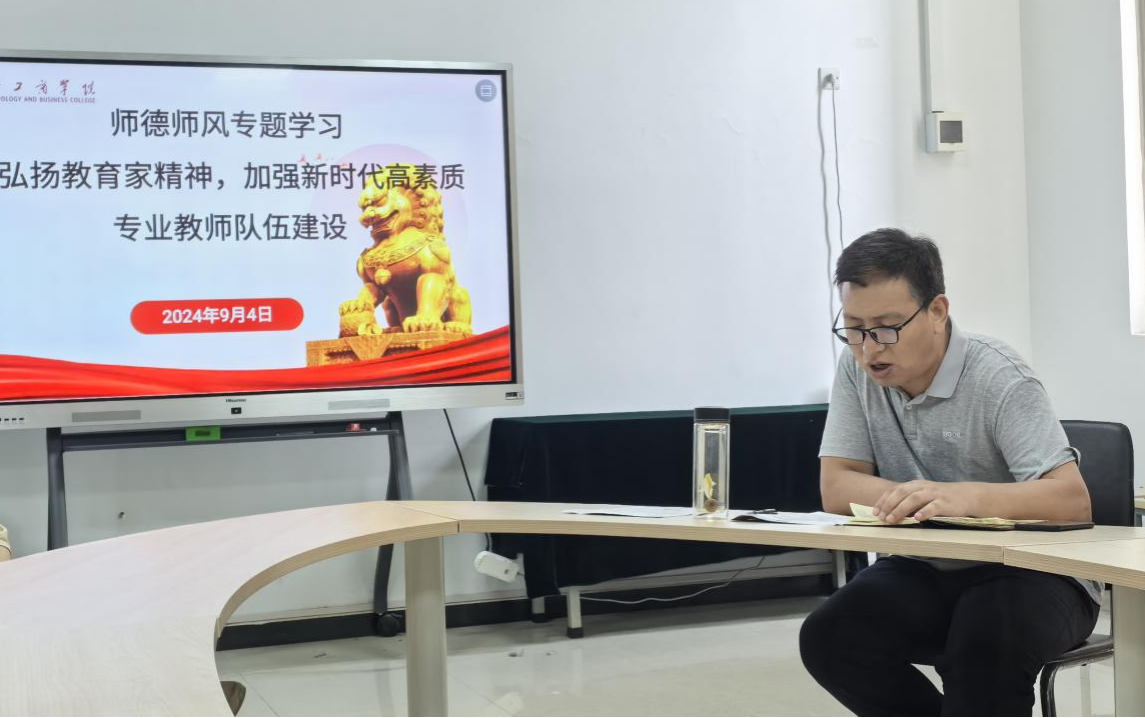 为庆祝第四十个教师节,信息工程学院组织教师开展师德师风专题学习,王飞副院长首先传达了学校党委对师德师风建设的高度重视