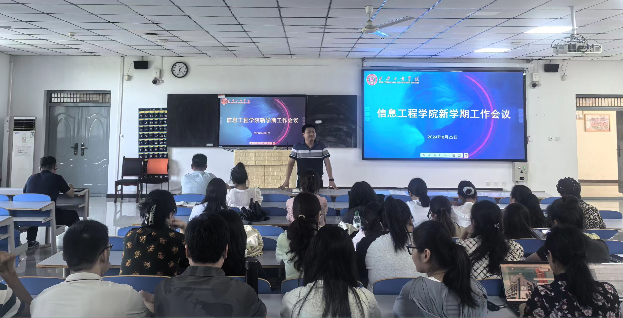 信息工程学院在第二教学楼113报告厅召开工作部署会,学院学生副院长李恒、教学副院长王飞出席并针对学院学工工作、教学工作进