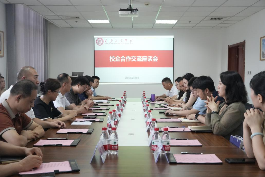 西安工商学院与西安市国际协作创新中心等7家企业开展校企合作交流座谈会,此次会议聚焦于双方在科技创新、社会实践、就业指导及