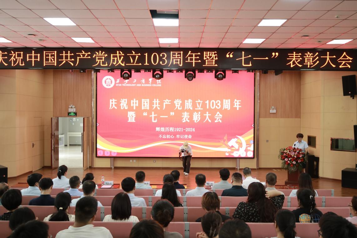 校党委书记、督导专员田伏虎出席会议并讲话, 副校长杨欣欣领誓重温入党誓词 党委副书记、纪委书记杨红雨宣读中共西安工商