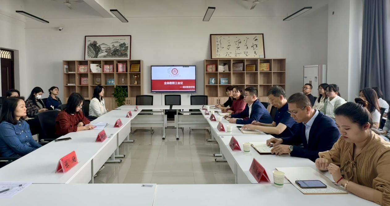 西安工商学院通识教育学院(含国际教育学院)召开全体教职工大会,新任教学副院长虞新学和学院在职教职工参加大会,他对学院提出