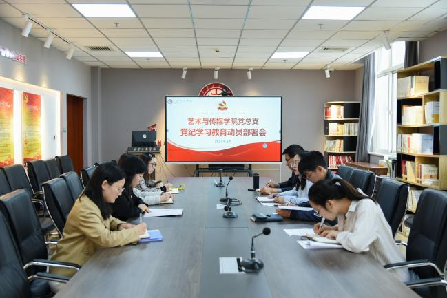 为传达学习习近平总书记关于党纪学习教育重要指示精神,艺术与传媒学院党总支在图书馆四楼党建活动室召开党纪学习教育动员部