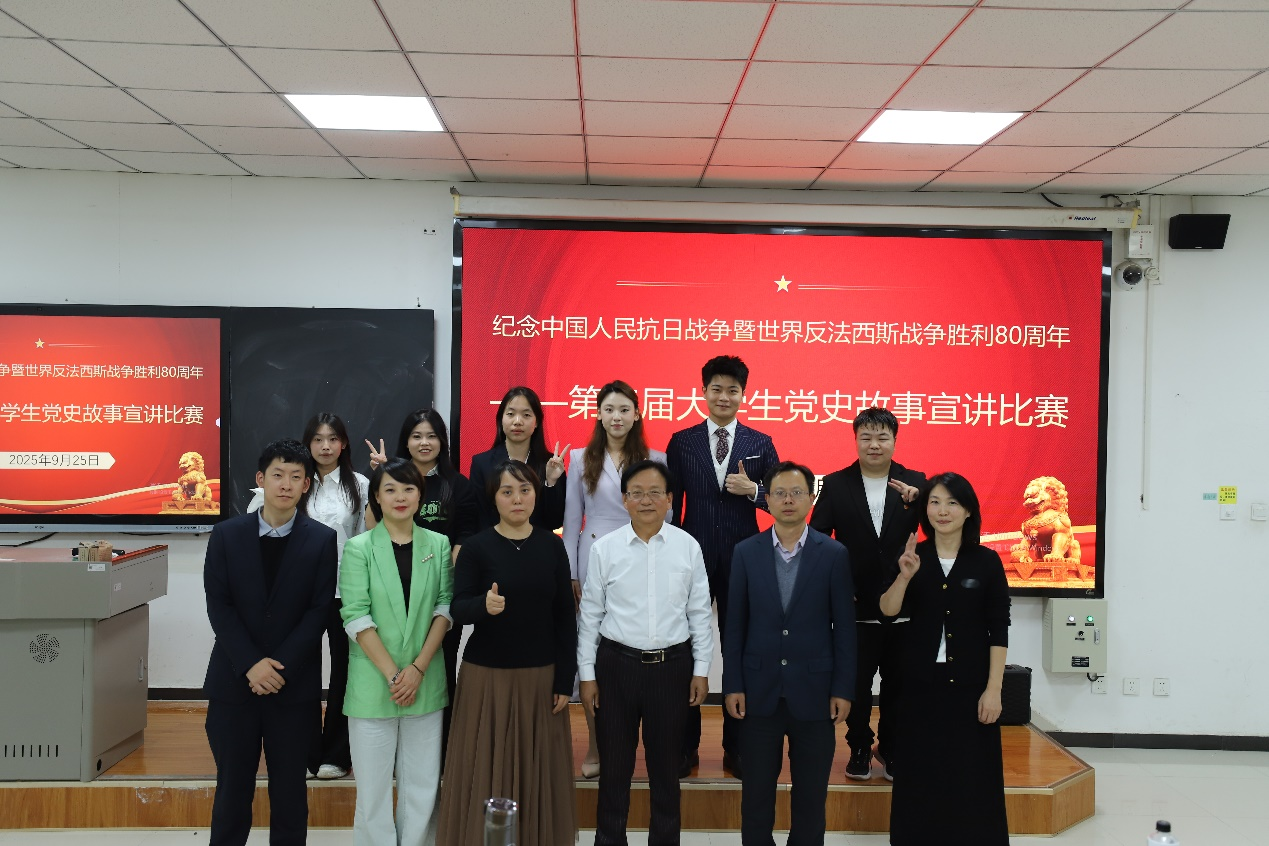 由马克思主义学院精心主办的“回望抗战历史·传承红色基因”第三届大学生党史故事宣讲比赛决赛在教学楼1410教室内隆重举行。
