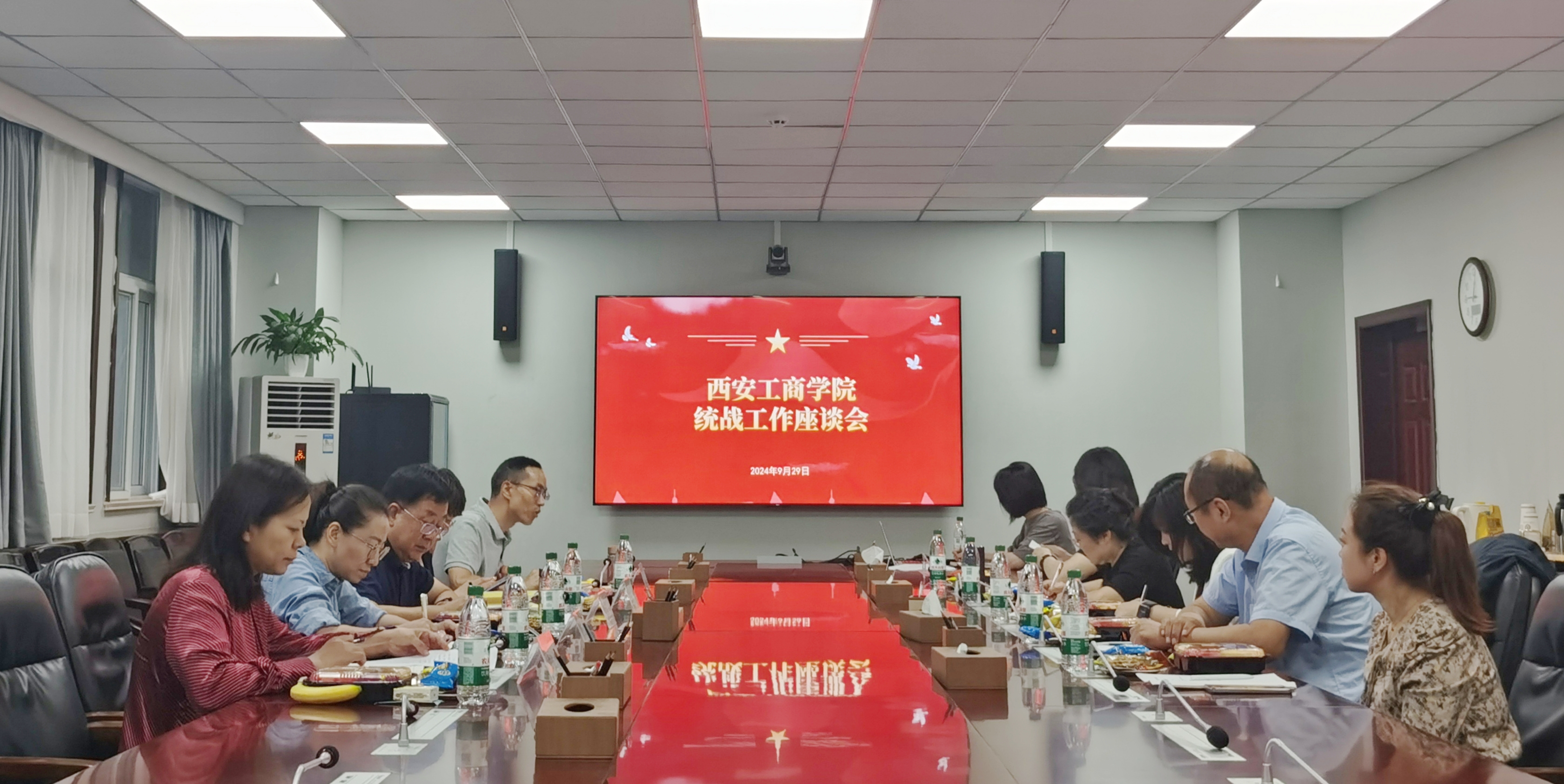 学校在行政楼三楼会议室召开2024年统战工作座谈会,校党委书记田伏虎、副校长杨欣欣、党委副书记杨红雨、人事处处长闫海霞、
