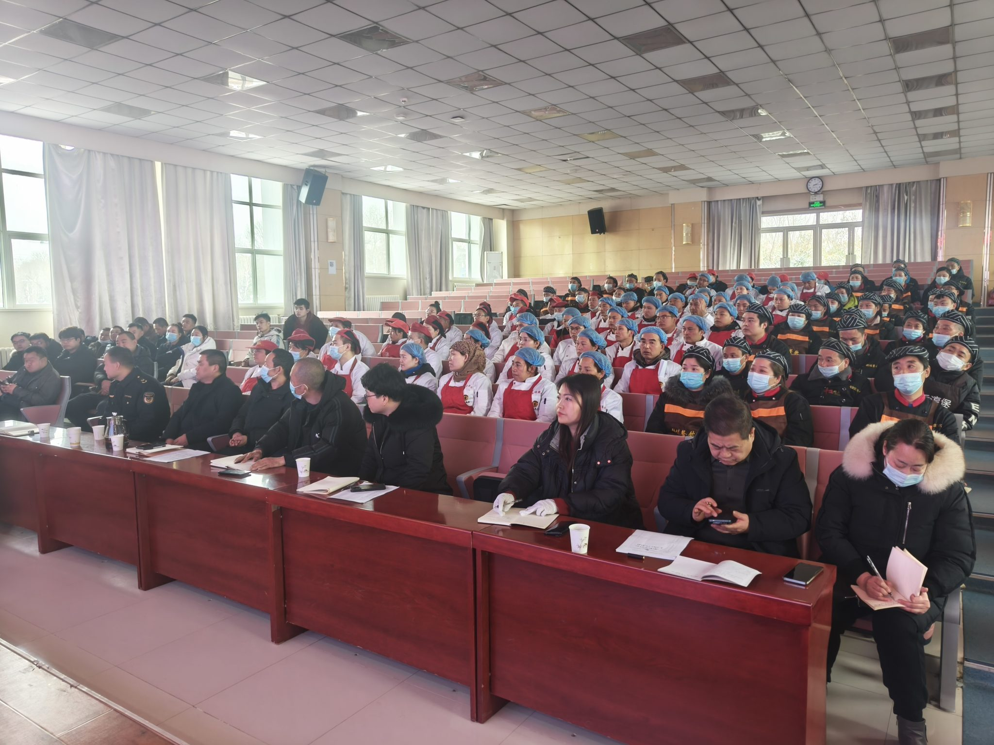 2024年2月24日下午,后勤保卫处邀请高陵区市场监管局城区监管所杨所长及食品科党科长一行两人,在我校学术报告厅对食堂、商业从业人员进行了食品安全知识及服务意识提升培训。各餐厅经理、食堂从业人员、商业店铺从业人员及后勤保卫处相关工作人员参加培训。
