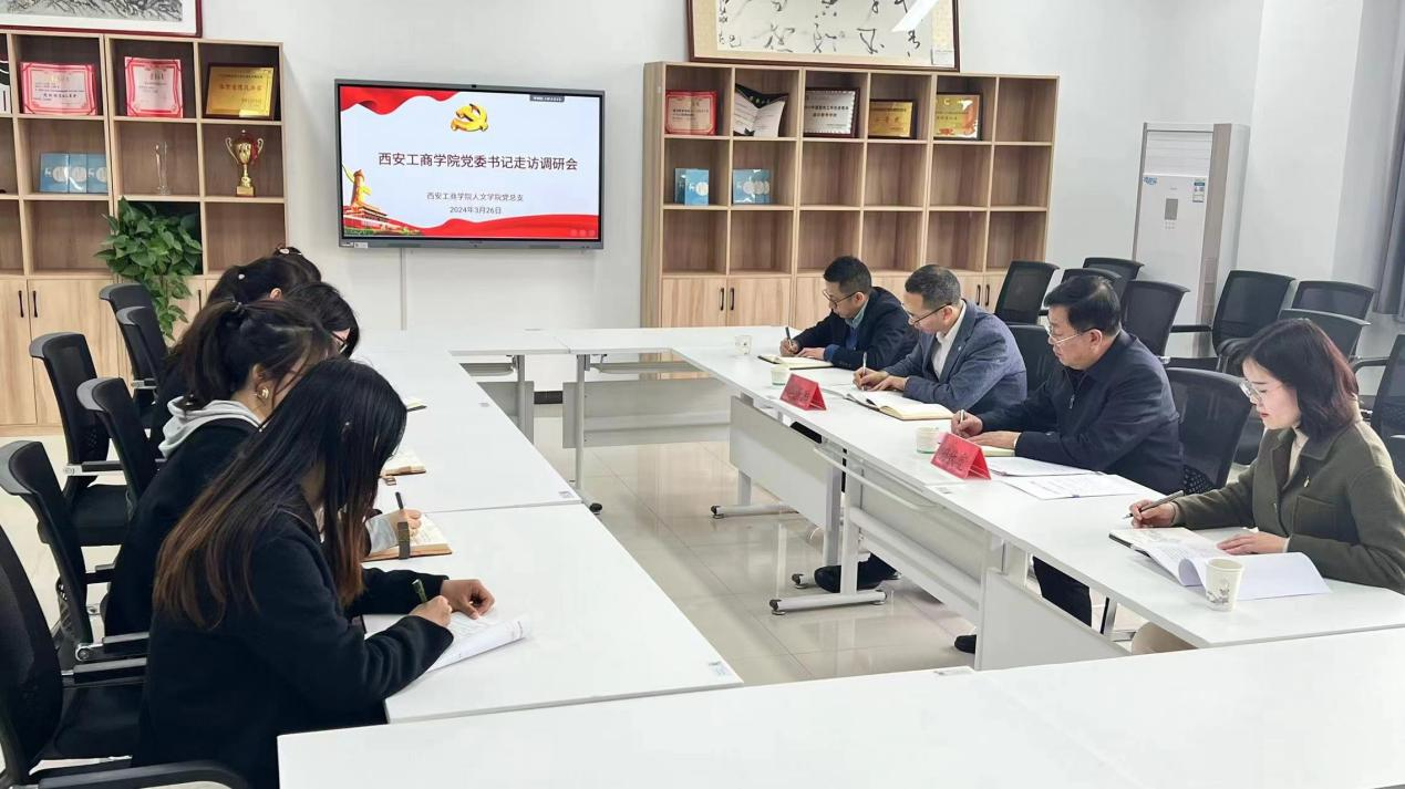 为全面了解人文学院2024年度教育教学、科研、师资队伍、党的建设等方面基本情况,进一步推动学校迎评促建工作,校党委书记田伏虎、党委宣传部部长李景阳于2024年3月26日深入人文学院进行走访调研,人文学院党总支书记范诚梅、副书记原朝阳及全体支部书记参会。