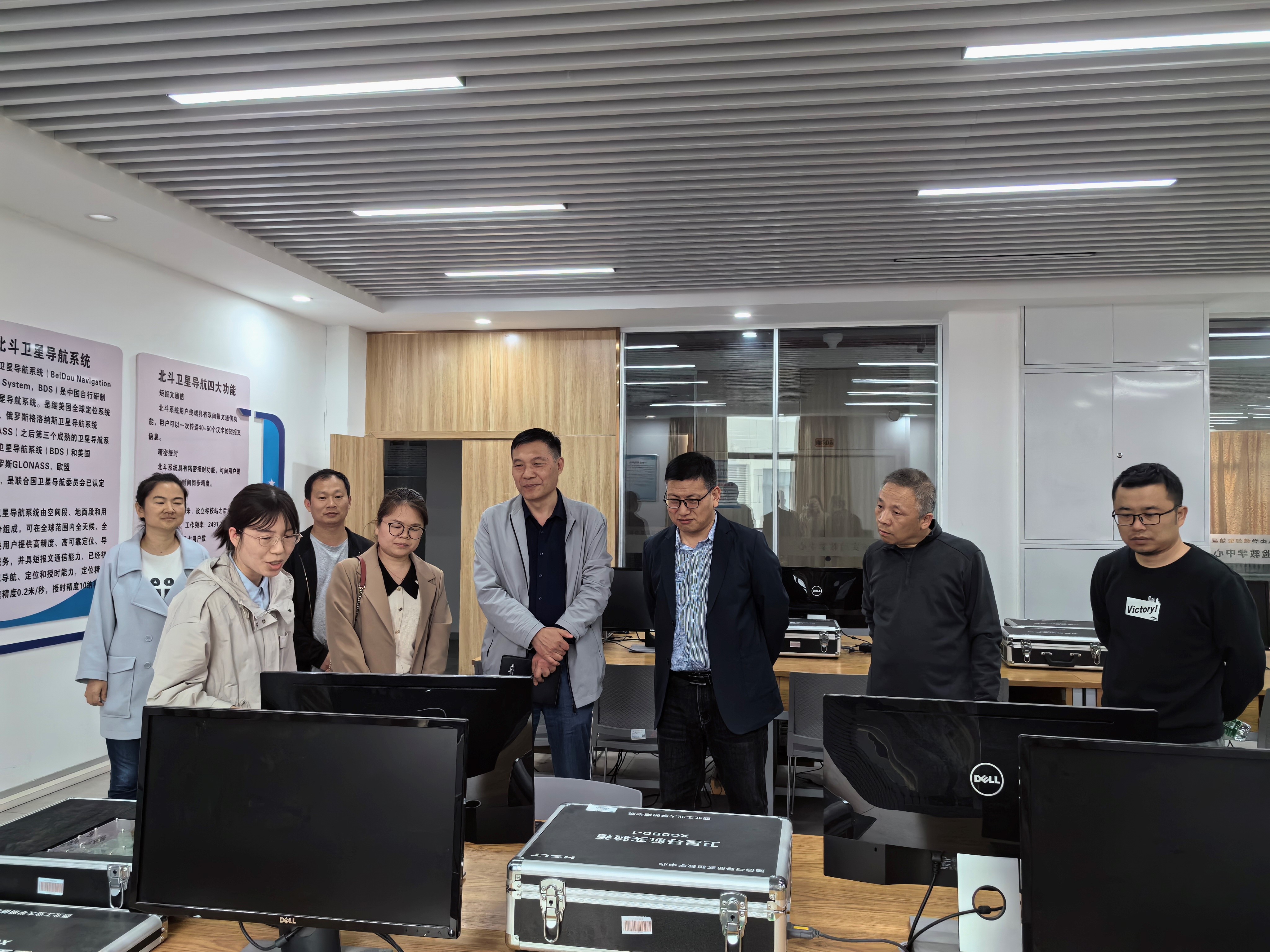 王飞副院长一行人首先参观了西安明德理工学院信息与工程学院北斗产业学院重点实验室。在参观过程中,北斗产业学院张健副院长及实验室老师详细介绍了实验室的设备配置、实验课程设置以及学生实验操作情况。并就实验室的运行模式和创新实践进行了深入探讨交流。