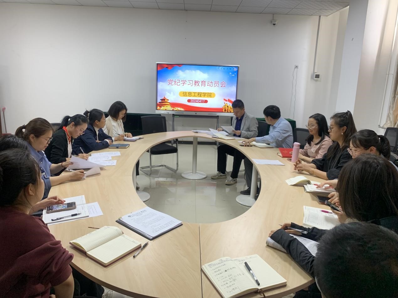 为压紧压实全面从严治党主体责任,持续巩固风清气正的校园政治生态,4月17日下午,信息工程学院在实验楼301会议室召开党纪学习教育动员会,党总支书记李恒主持会议,学院全体教职工参加会议。