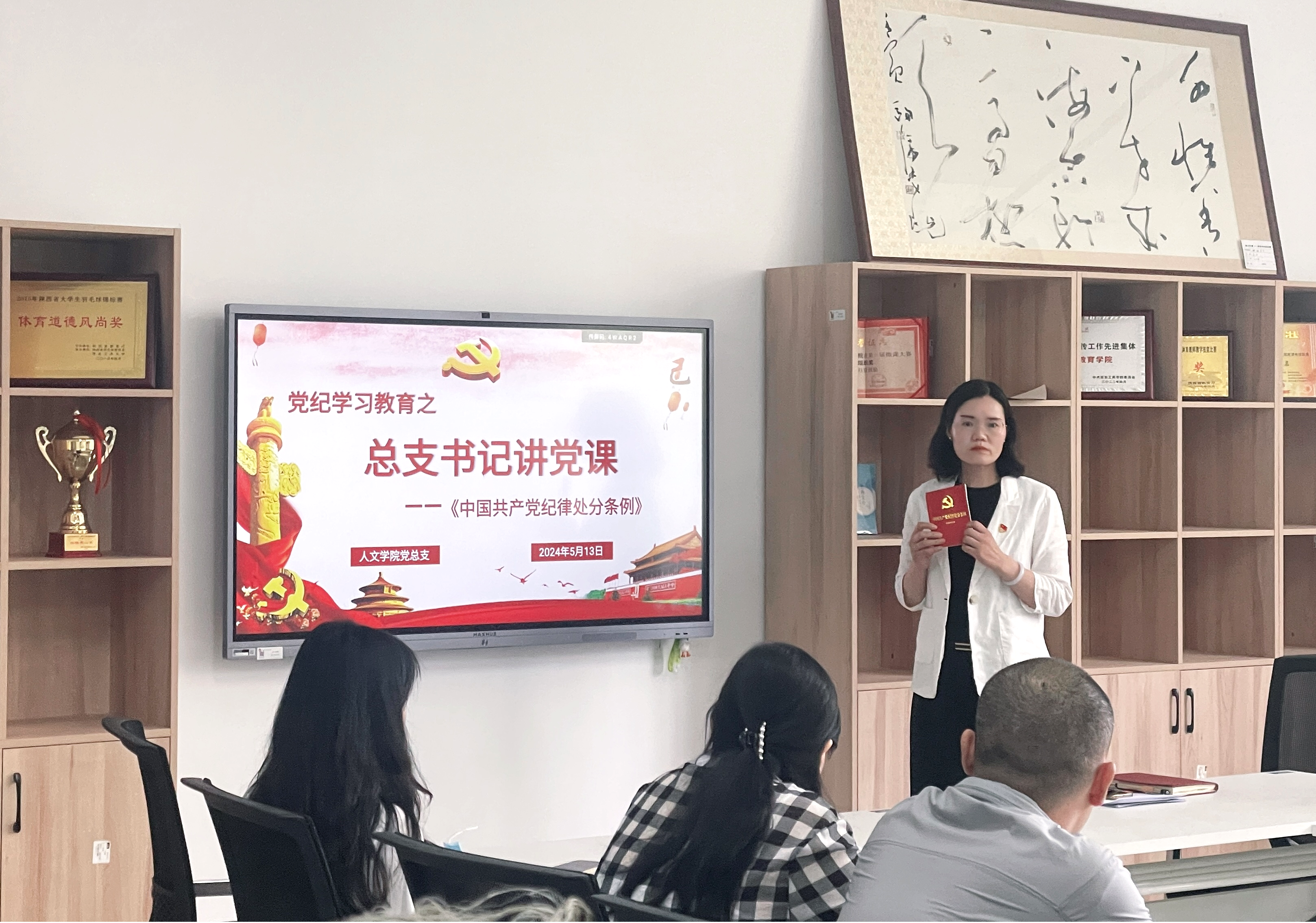 为深入学习贯彻习近平总书记关于党纪学习教育的重要讲话和重要指示精神,落实校党委关于党纪学习教育工作的部署要求,5月13日,人文学院党总支组织全体总支委员、支部书记及学生党员开展党纪学习教育专题党课。本期党课由党总支书记范诚梅同志主讲。