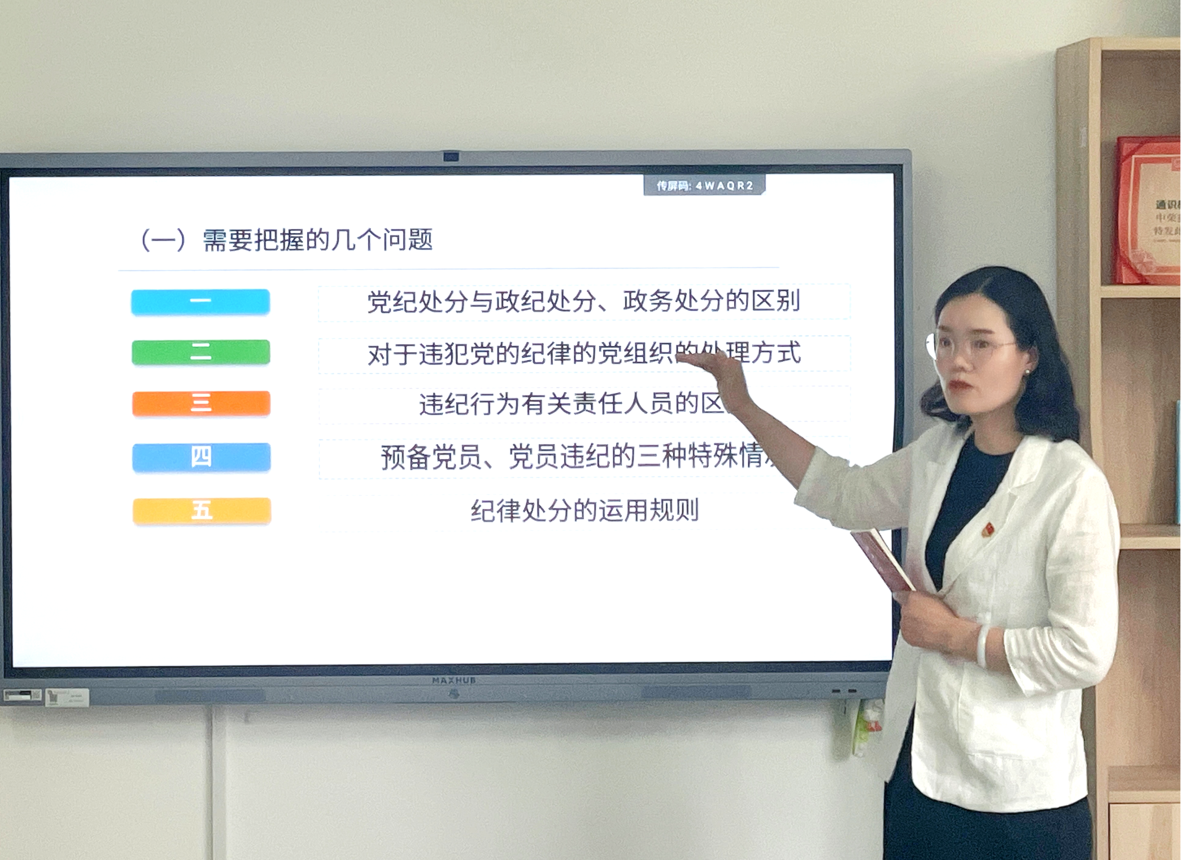 范书记首先立足自身学习《条例》的体会和学校当前工作,以学习贯彻新修订的《中国共产党纪律处分条例》为题,从《条例》的修订背景及要求、《条例》主内容解读、认真抓好《条例》的贯彻执行等三个方面,结合实际案例,进行了全面、系统的解读。她指出,《条例》适用于违反党纪应当受到党纪责任追究的党组织和党员,是管党治党的重要基础性法规,不仅为惩治违纪违法行为提供了定性量纪标准,也为广大党员提供了科学、合理的行为规范,使党员能够明确是非界限、清楚自律标准、守住行为底线。