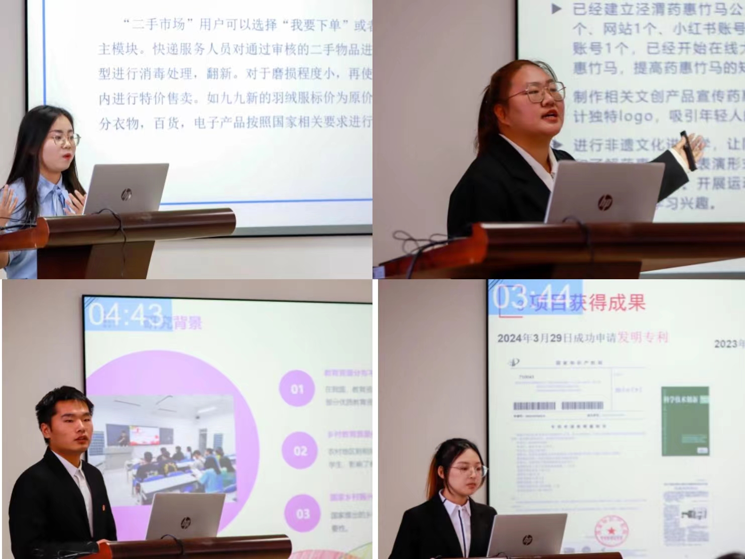 此次答辩会共计27个项目进行了结题答辩。答辩现场,各个项目团队围绕研究目标、实施情况、创新点、研究体验与收获以及研究成果等方面进行了详细的汇报,从环保科技到智能应用,从文化传承到社会服务,项目内容丰富多彩,充分展示了我校大学生在创新创业方面的多元化探索和实践。