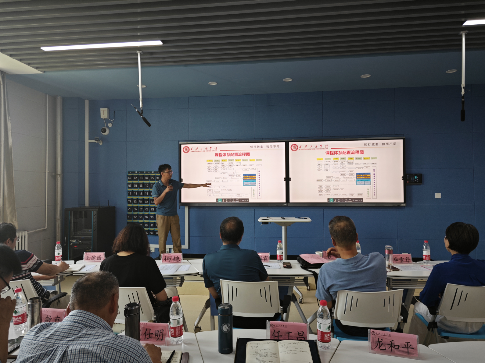 根据学校关于2024版本科人才培养方案修订工作的部署安排,为进一步完善人才培养方案修订方案的科学性和合理性,学校于2024年6月12日在教学楼2-212召开了第二场针对2024版本科人才培养方案研讨会,学校副董事长常务副校长龙和平、教务处、学生处、各二级学院负责人、各教研室(系)主任以及特邀专家西安工业大学人工智能与数据科学研究院院长、陕西省计算机类专业教指委委员王建国教授、原咸阳师范学院文学与传播学院院长袁方教授、西安外事学院广电艺术系主任杨艳教授、西安市创新人才研究院院长李佩霖正高级经济师、西安工业大学电子信息工程学院自动化系主任毕雪芹副教授参加了此次会议,会议由教务处处长刘洪鹏主持。