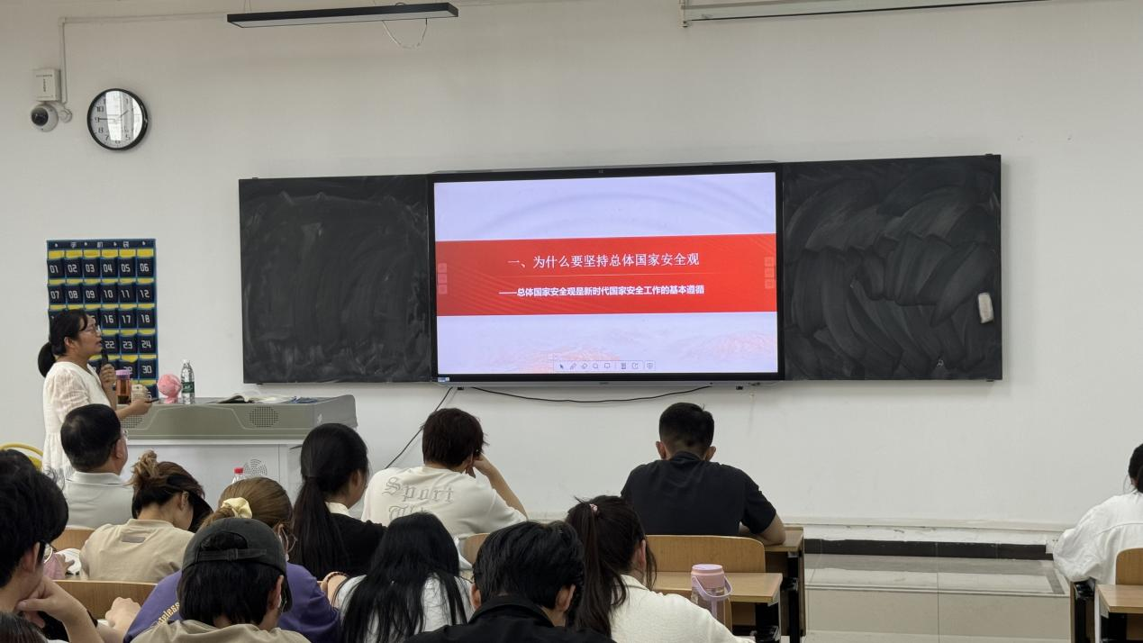 首先,张凡老师从国家安全日宣传片内容着手,让同学们通过宣传片了解国家安全观的内容、讲解了国家安全包含的内容、内涵等内容。明确指出我们党诞生于国家内忧外患、民族危难之时,对国家安全的重要性有着刻骨铭心的认识。新中国成立以来,党中央对发展和安全高度重视,始终把维护国家安全工作紧紧抓在手上。分别从新中国成立后、改革开放后以及进入新时代我国是采取什么样的措施不断发展国家安全,国家安全工作归根结底是保障人民利益,经过不懈努力,我国创造了社会长期稳定和经济快速发展两大奇迹。