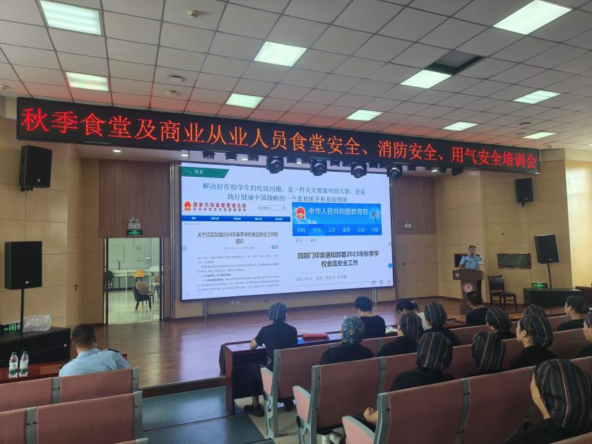 食品安全是本次培训的重中之重。培训中,市场监管局城区监管所杨所长、食品科党科长,通过生动的案例分析和深入浅出的讲解,向参会人员详细阐述了食品安全的重要性及法律法规要求,并对校园食品安全风险管控如何落实主体责任,守护好食品安全风险管控的红线给予了专业的意见和建议,同时针对食堂运行过程中涉及的食品采购及储存、加工、销售、餐具清洗消毒、食品留样、食堂环境卫生和个人卫生等方面的规范化操作要求进行了全面详细的讲解。