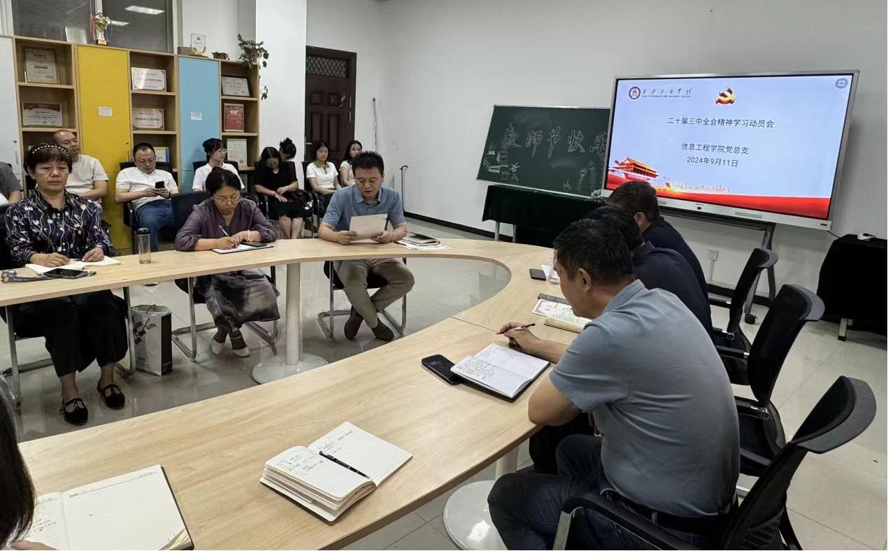 本次的精神学习会,是一场知识的盛宴,也是一次意识的觉醒。通过对党的二十届三中全会精神的学习,信息工程学院全体教师更加明确了前进的方向,相信在这次学习会的推动下,大家将以更加饱满的热情和更加严谨的态度,投身于学习和生活中。