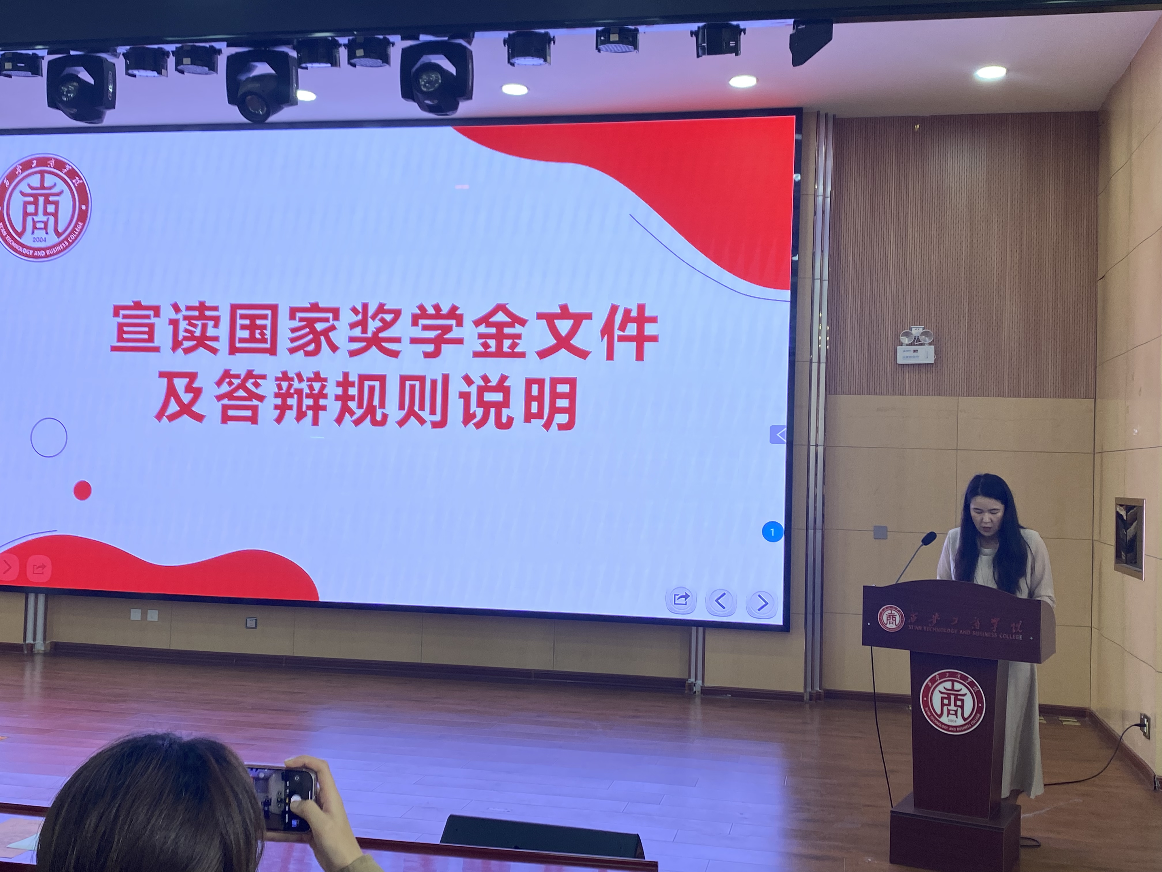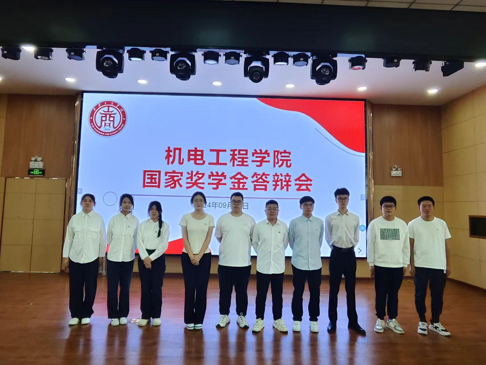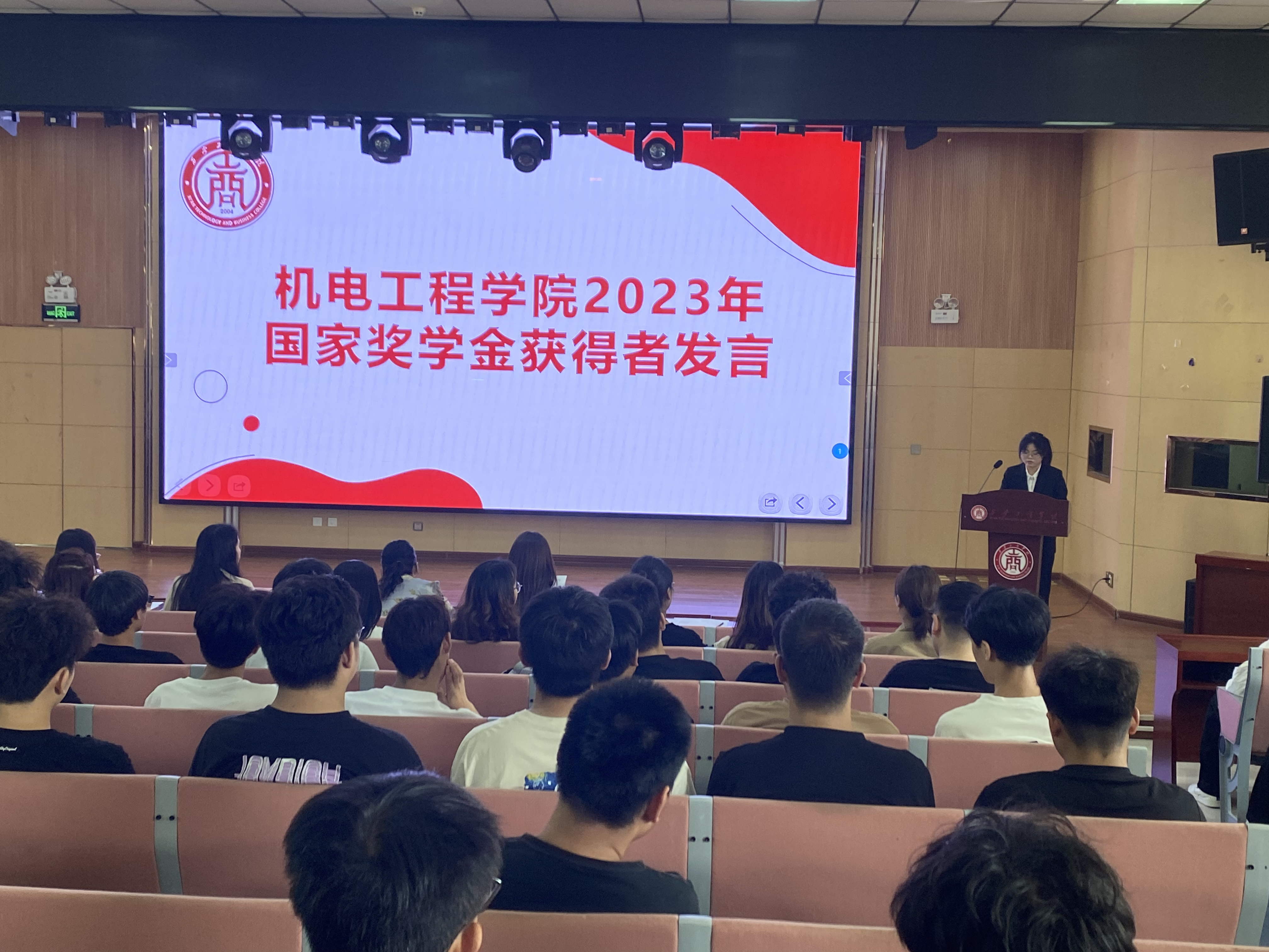 机电工程学院执行院长韩娟、党总支书记学工副院长罗艳、教学副院长薛凤凤和2023年国家奖学金获得者陈悦,学院教师代表、全体辅导员以及近300名学生参加了观摩。