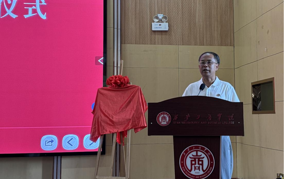 西安工商学院人文学院院长致辞,他表示热烈祝贺,并对学院未来的发展寄予厚望。他鼓励产业学院要立足市场需求,紧密围绕国家发展战略,聚焦新质生产力的发展,突破专业局限,培养具有创新精神和实践能力的复合型人才。他指出,新视域文化产业学院的成立适逢其时,大有可为。新视域文化产业学院的建设发展要传承优秀文化,担负新时代文化使命;要突出新视域文化产业特色,着力人才创新能力和跨学科能力的培养;更要推动人文与科技融合,具备前瞻产业发展方向的眼光。他希望,学院的建设在未来的道路上能够携手并进,共创辉煌,为文化的传承与人文社科专业的振兴书写出更加灿烂的篇章。