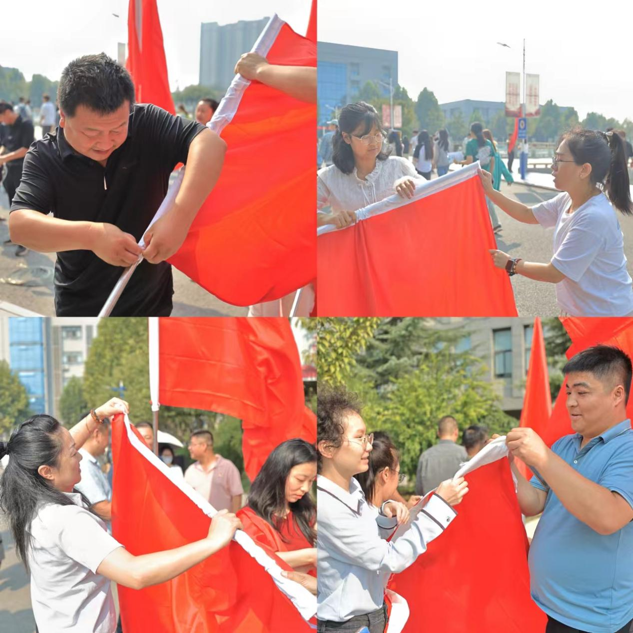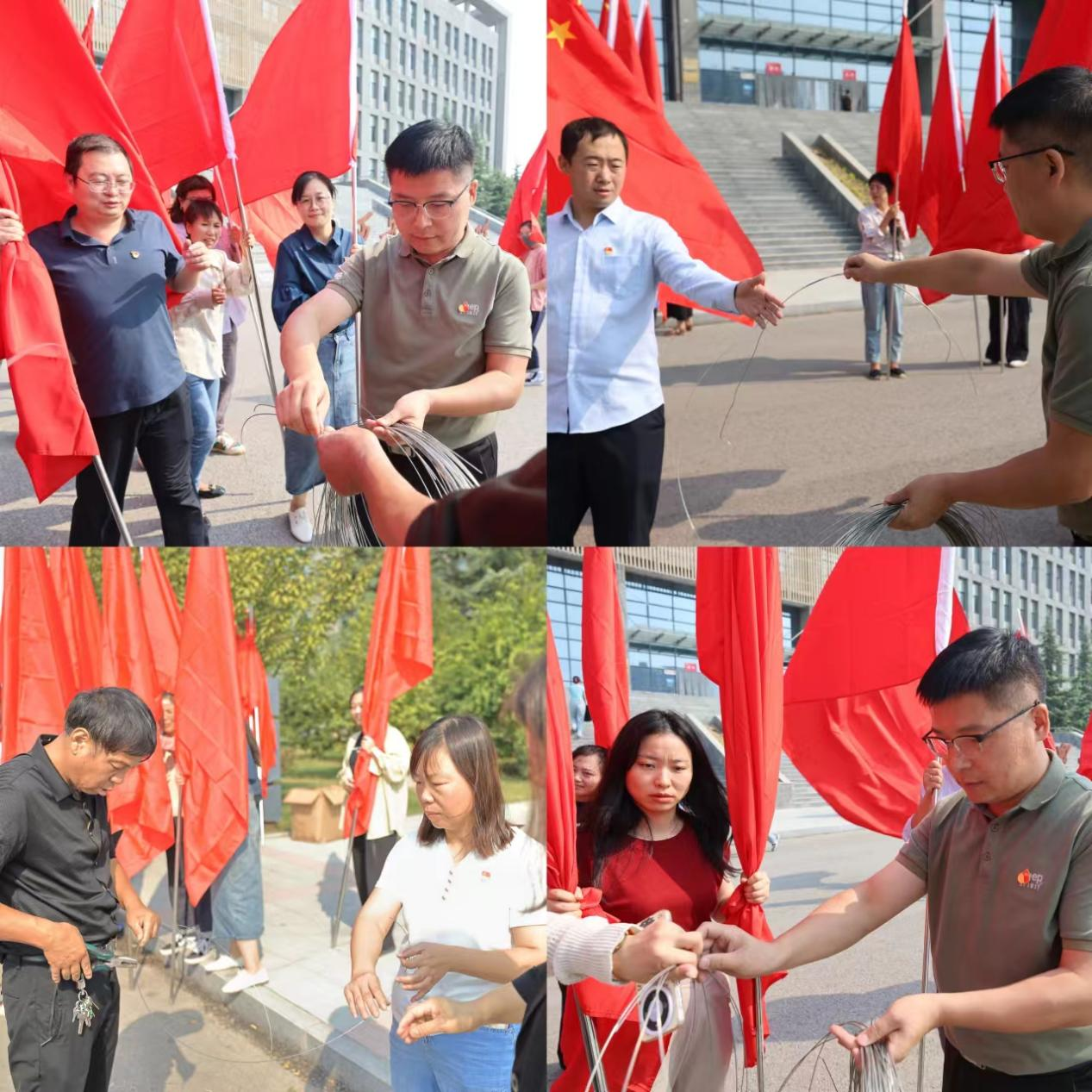 金秋十月迎国庆,举国欢腾庆华诞。为隆重庆祝中华人民共和国成立75周年,大力营造浓厚的爱国主义氛围,进一步加强爱国主义教育,9月27日上午我校机关党总支及党委教师工作部组织开展“迎国庆、挂红旗”主题党日活动,机关党总支及党委教师工作部全体党员参与此次活动,在活动开始之前左斌副书记进行了安排分工。