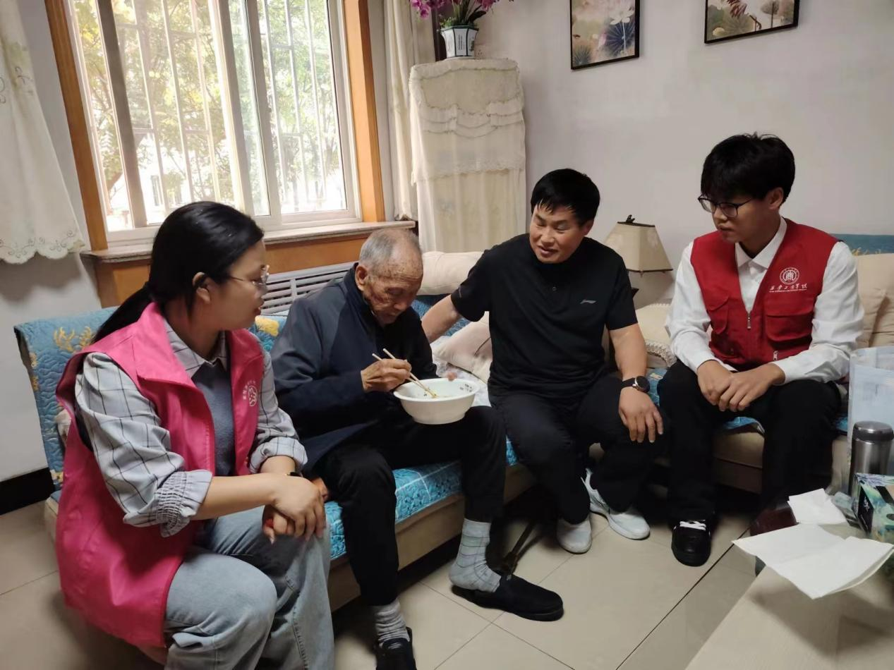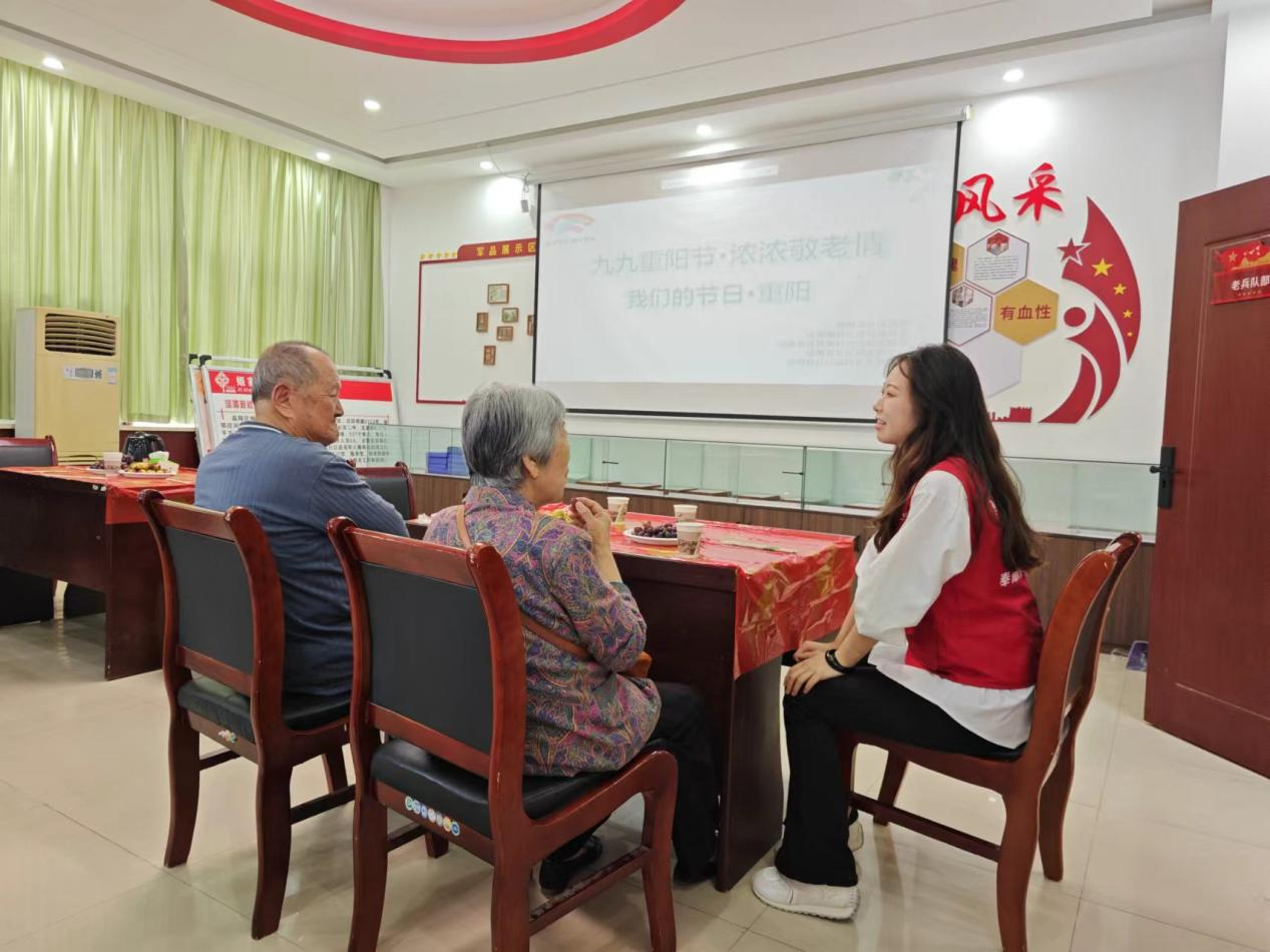 志愿活动互动中,志愿者们分组走访了退役军人,为他们打扫卫生、陪伴他们共建午餐,耐心细致询问了老人们的身体状况,并为他们进行了健康知识普及。每到一处,他们都与退役军人们亲切交流,并为他们送上精心准备的节日礼物,彰显着青年大学生们的朝气和活力。
