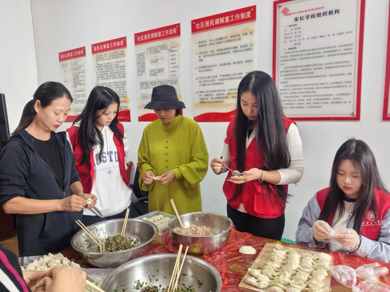 最好的关爱是陪伴,最真的关怀是行动。当天,泾渭苑社区组织了一系列志愿服务活动,旨在为社区的老人们送去温暖与关爱,让他们感受到社会的尊重与呵护。大学生志愿者们积极热情参与,分工明确,有的负责生活照顾,有的负责陪伴聊天。传统节日必有传统项目,社区还准备了特别的暖心活动——包饺子,志愿者们与退役老军人们积极参与其中,其乐融融。