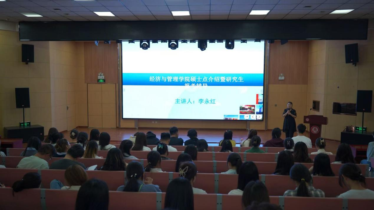 紧接着,经济管理学院院长助理郭鹏对本次讲座进行了总结。他首先对李永红教授的精彩演讲表示衷心的感谢,并高度评价了讲座对学生们考研规划的积极作用。郭助理指出,考研不仅是学术上的提升,更是人生道路的一次重要选择。他鼓励学生们要坚定信心,积极面对考研的挑战,充分利用学院提供的资源和平台,为自己的未来奋斗。同时,郭助理也表示,学院将继续关注学生们的成长与发展,提供更多优质的学术资源和交流平台,助力学生们实现自己的考研梦想。