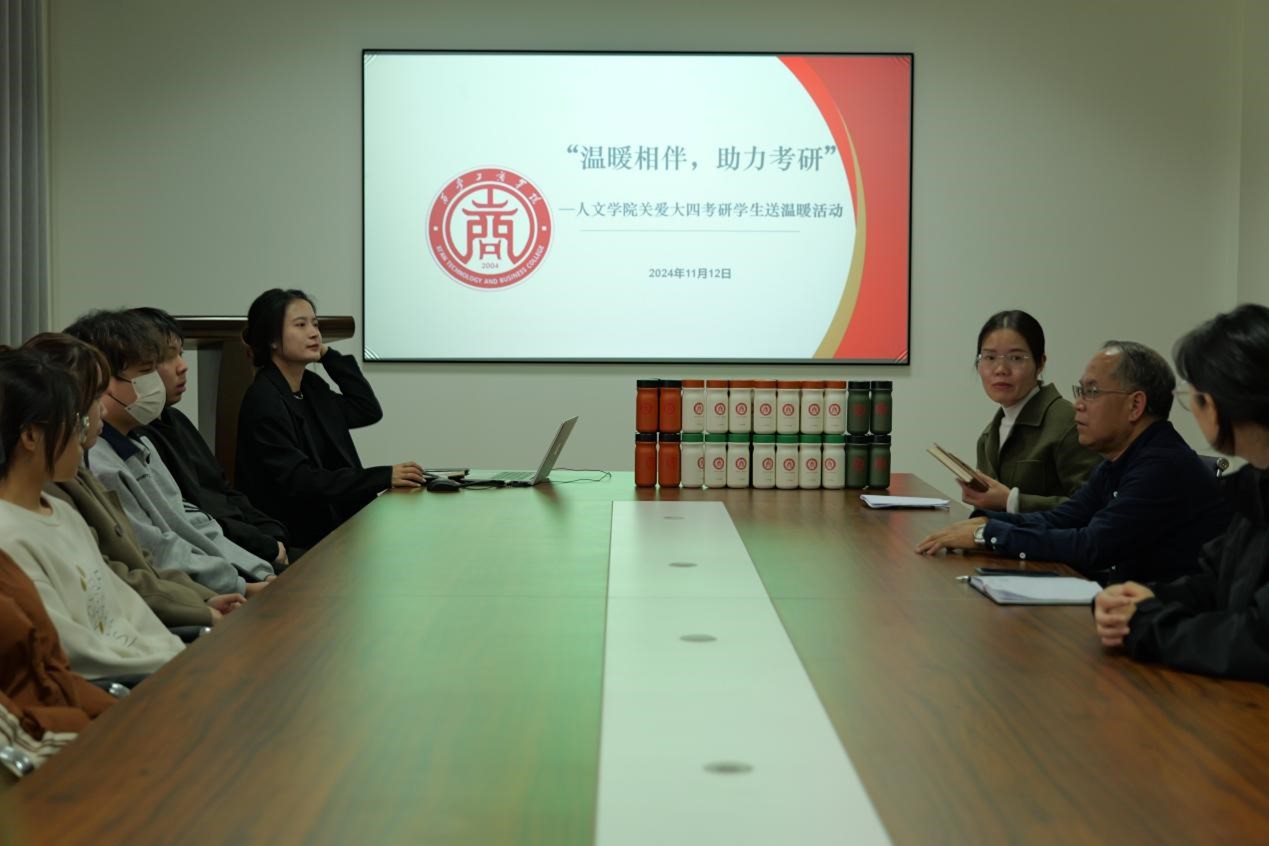11月12日下午,人文学院在图书馆五楼会议室开展2025届“温暖相伴,助力考研”—为考研学生送温暖活动,旨在鼓舞考研学生的斗志,缓解备考压力,给同学们传递温暖与祝福。本次活动由人文学院21级辅导员朱婉悦主持,人文学院院长、党总支书记、辅导员老师以及40余名大四考研学生参加了本次送温暖活动。