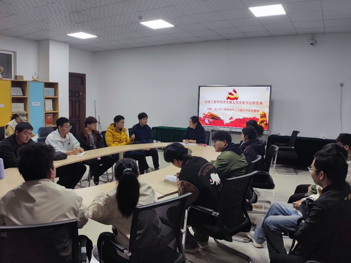 为深入推动党纪学习教育走深走实,在党的二十届三中全会胜利闭幕后,为了深入学习贯彻党的二十届三中全会精神,增强思想政治教育,加强党的知识普及,在党纪学习教育中坚持更高标准、更严要求,先学一步、学深一层。西安工商学院信息工程学院学生第五党支部于2024年11月21日在实验楼3-301教室开展有关讲座。信息工程学院学生第五党支部全体党员参加,本次授课由学生第五党支部书记马小林主讲。