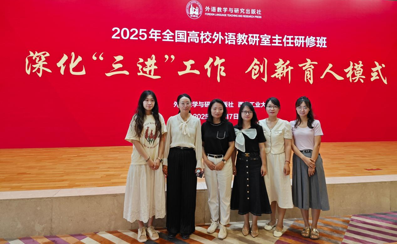 5月17日, 2025年全国高校外语教研室主任研修班在西安举办,本次研究班由教育部理解当代中国大学英语综合教程虚拟教研室、外语教学与研究出版社和西北工业大学联合举办了。我校通识教育学院英语教研室第一教研室主任何晨、第二教研室主任李敏芳以及教师付娟、马丹、李昕玥、田苗受邀参加。