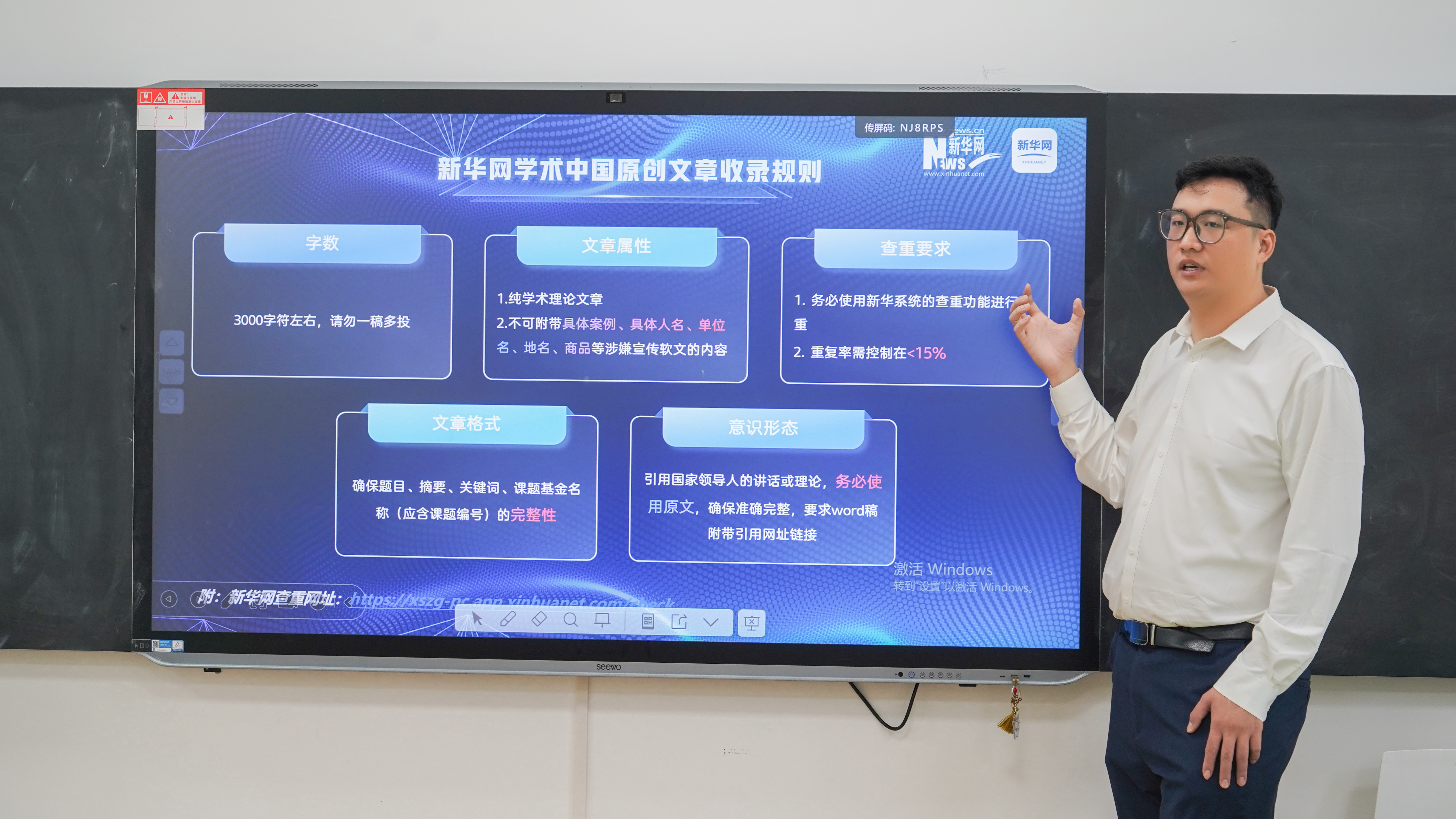 王云峰对人文学院的热情欢迎表示感谢,并做了题为“央媒引领 服务创新 新华网学术中国赋能人才教育科技高质量发展”的报告。王主任从平台定位、服务体系与高校合作模式等方面进行了详细阐述。他指出,“学术中国”作为首个国家级学术与知识产权服务平台在浏览量、阅读量、影响力等方面有着核心优势,“学术中国”始终致力于为高校学术发展搭建专业、高效的服务桥梁。同时对与会教师关心的平台收录规则、流程做了详细介绍。他表示,此次与西安工商学院人文学院的合作,将充分发挥平台在知识产权保护、学术成果传播、科研资源整合等方面的优势,助力学院打造具有鲜明特色的人文社科研究品牌,推动学术成果从“象牙塔”走向社会应用的广阔天地,实现学术价值与社会价值的同频共振。