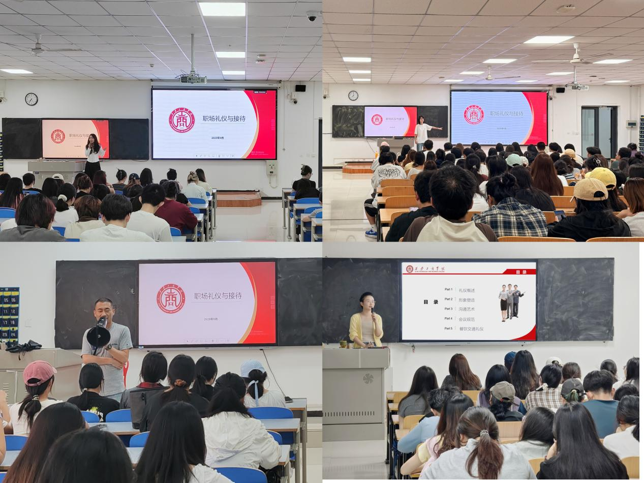 为帮助2026届毕业生提前熟悉职场规范,提升就业竞争力,实现从校园到职场的自信跨越,促进我院毕业生高质量就业,9月15日晚,人文学院成功举办了“职场礼仪与接待”就业育人专题培训。本次培训聚焦“形象塑造”“沟通艺术”“会议规范”及“餐饮交通礼仪”等核心模块,旨在系统提升毕业生的职场软实力与综合职业素养/