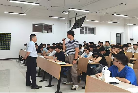 在授课过程中,副董事长龙和平结合自身教学及交流和考察经历,勉励同学们要志存高远、加强学习过程管理与规划,紧紧围绕青年学生成长中的疑惑,亲切地与同学们交流,讲课生动形象,整个课堂教学氛围宽松活泼,在轻松、愉快中获得关于人生观的启迪,构筑起积极人生态度的“四梁八柱”。首先阐述了人生何以立身?——答案在“认真”。强调“认真”是对生命的尊重,是成就一切事业的根本前提,告诫同学们认真对待学业、对待工作、对待生活,用“认真”二字为青春打下最坚实的底色。其次指明了梦想何以成真?—— 答案在“务实”。强调了实践的重要性。鼓励同学们要将目光投向现实,将双脚扎进泥土。列举往届优秀校友从基层做起、一步步成长为行业骨干的鲜活案例,生动说明“务实”就是将宏伟的目标分解为一个个可执行的小步骤,就是不驰于空想、不骛于虚声,为未来的翱翔积蓄力量。