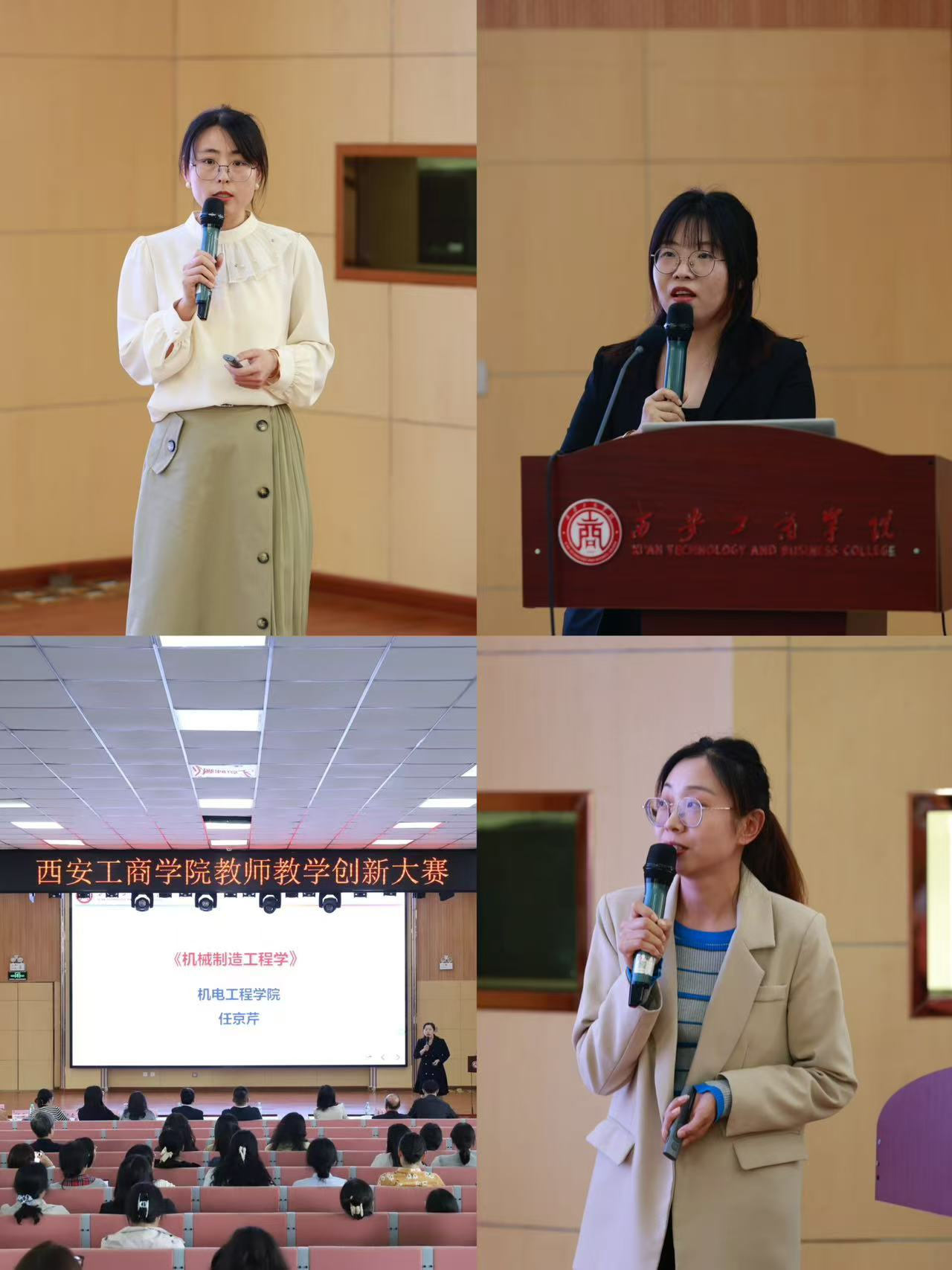 本次大赛教师发展中心邀请了荣获第二届全国高校教师教学创新大赛全国二等奖的西安工业大学张锦教授,荣获陕西省第三届高校教师教学创新大赛一等奖的陕西科技大学庞凌燕副教授、与我校教务处副处长辛大欣副教授及校级督导共同担任评委。