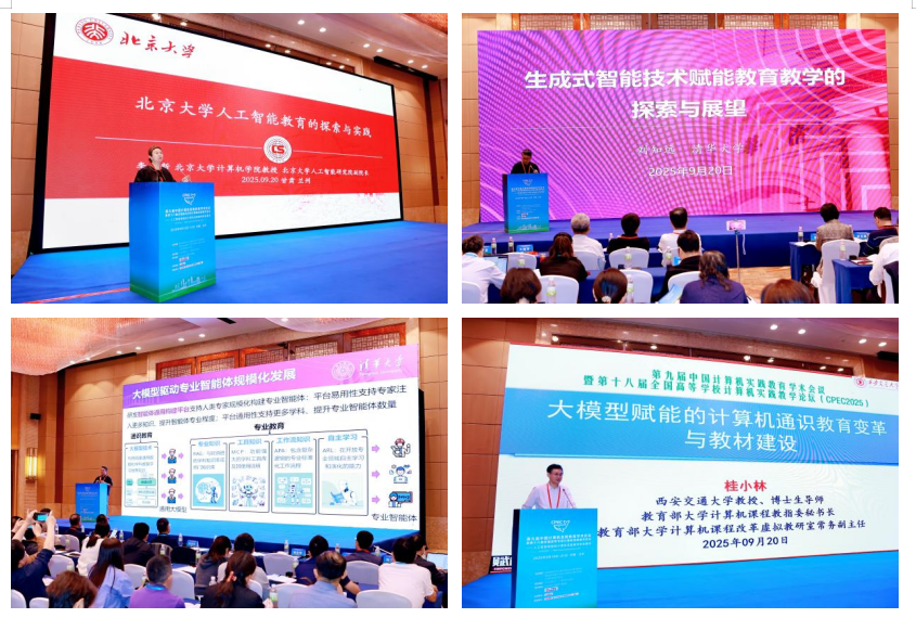 本次会议聚焦“人工智能赋能计算机实践教育创新”核心主题,汇聚全国计算机教育领域顶尖专家学者、高校教师及企业代表,共话行业趋势、共商教学改革。北京大学计算机学院教授、人工智能研究院副院长李文新,清华大学教授刘知远,西安交通大学教授、博士生导师、教育部大学计算机课程教指委秘书长桂小林等学界权威,分别以《人工智能教育:从抽象到具体——以北京大学为例》《生成式智能技术赋能教育教学的探索与展望》《大模型赋能的计算机通识教育变革与教材建设》为题作主旨报告,从高校实践教学改革、前沿技术融合、教材体系建设等维度提供前沿思路。