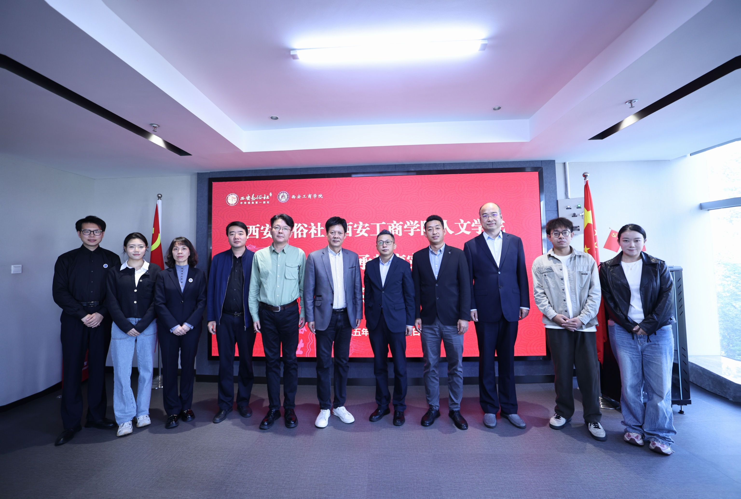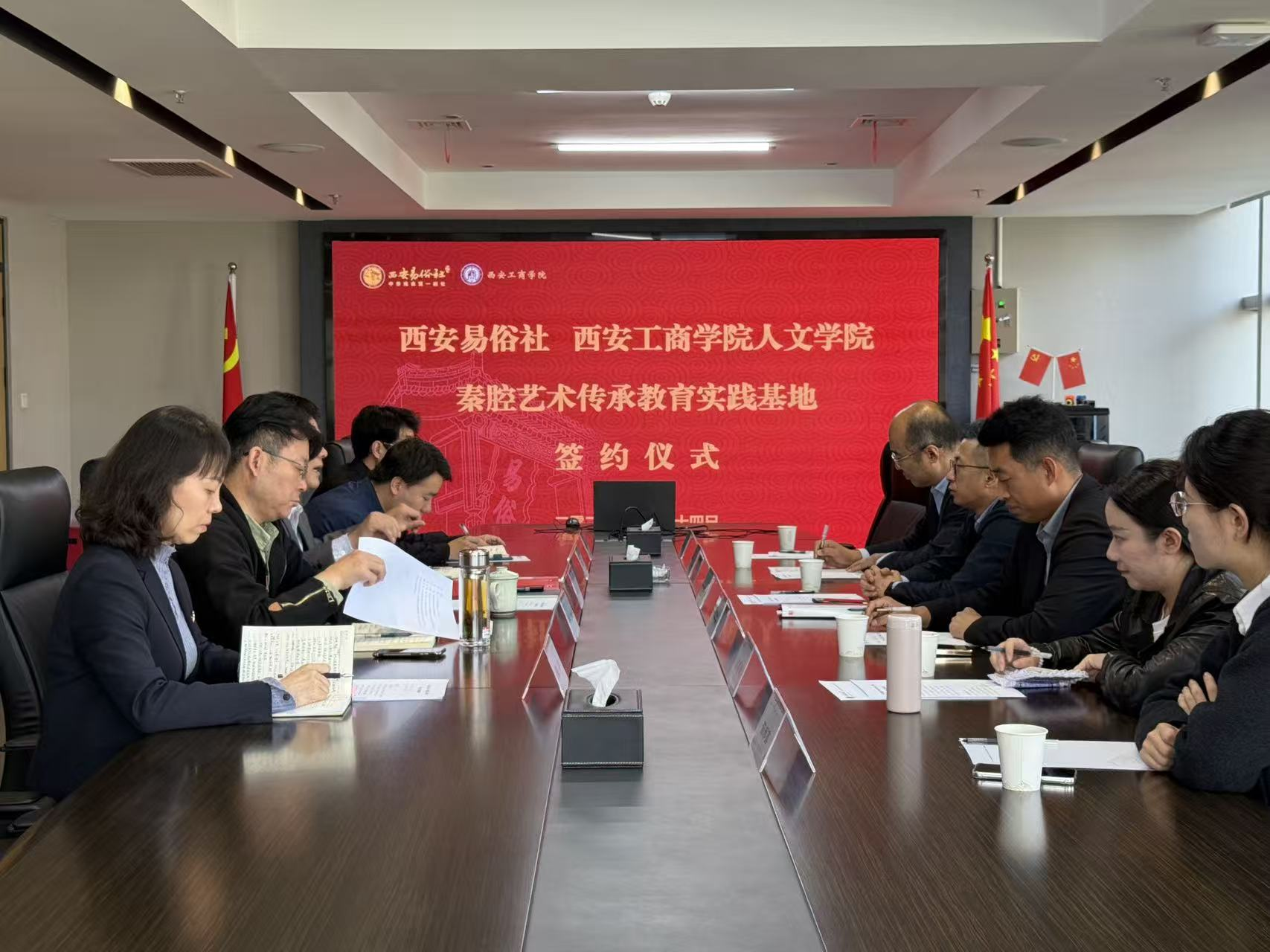在西安工商学院新视域文化产业学院的组织下,9月24日上午,西安工商学院人文学院与国家级非物质文化遗产传承单位——西安易俗社校社文化共建活动顺利开展。