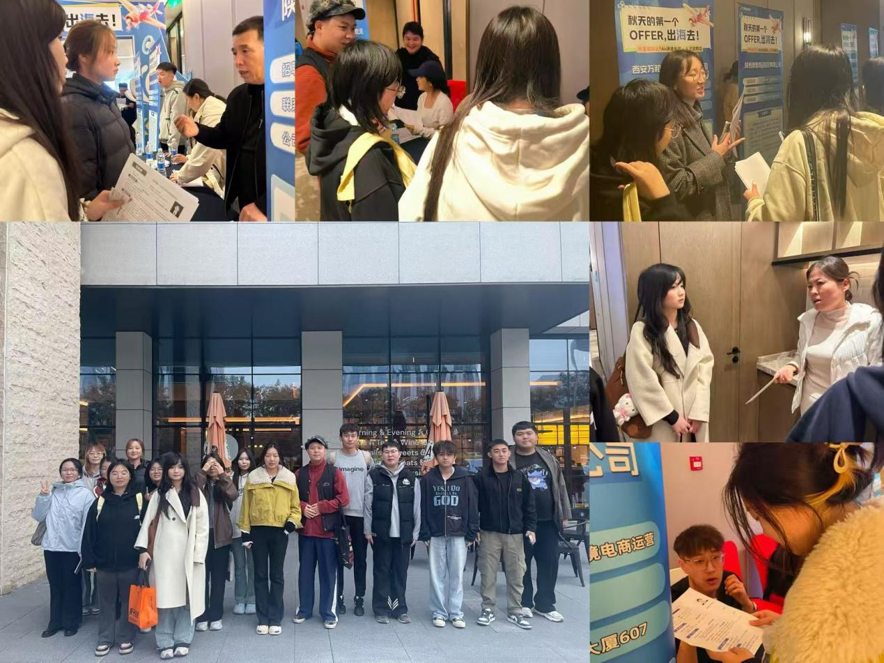 与此同时,经济系积极组织学生走出校园,于10月21日前往喜来登酒店参与由阿里国际站携手二十余家优质企业举办的专场双选会。会上,我院国际经济与贸易、金融科技专业的学生踊跃参与,他们积极投递简历,主动与招聘方面对面交流,把握宝贵的实习与就业机遇。此次校外实践有效拓宽了学生的求职渠道,进一步强化了校企联动与人才共育机制。