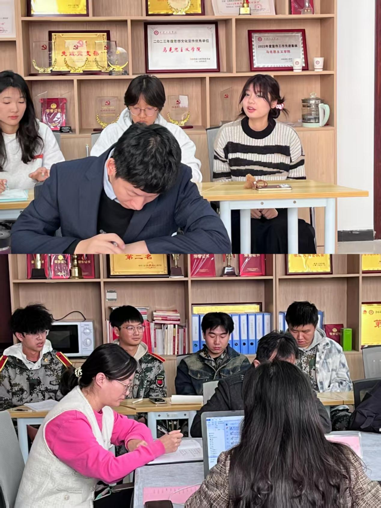 针对本次座谈会的召开初衷,马克思主义学院院长严建会特别指出,学院始终秉持"以学生为中心"的发展理念,此次搭建师生对话平台,既是要倾听青年学子对思政课教学的真实感受,更要精准回应大家在思想成长中的现实关切。通过这种双向互动机制,推动形成"教学相长"的良性循环,最终实现学院教学质量与人才培养质量的同步提升。他特别寄语与会学生代表:"希望同学们能以主人翁的姿态,放下思想包袱,秉持实事求是精神,围绕课程设置、教学方法、实践育人等维度提出真知灼见,让我们携手为学院发展注入青春智慧,更为自身成长积蓄奋进力量。"