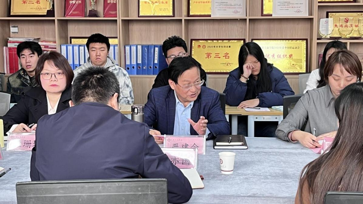 为深入贯彻落实立德树人根本任务,精准把握学生思想动态与学习需求,搭建师生沟通桥梁,11月4日,马克思主义学院在1-402会议室召开学生座谈会。西安工商学院党委书记、督导专员崔亦国、学生处处长王宇、教务处杨志红老师、马克思主义学院院长严建会、马克思主义学院副院长王珊珊、各教研室主任、四史及实践教研室全体教师出席会议,来自不同年级、不同专业的20余名学生代表齐聚一堂,围绕课程教学、实践育人、成长发展等议题畅所欲言、建言献策,座谈会由马克思主义学院院长严建会主持。