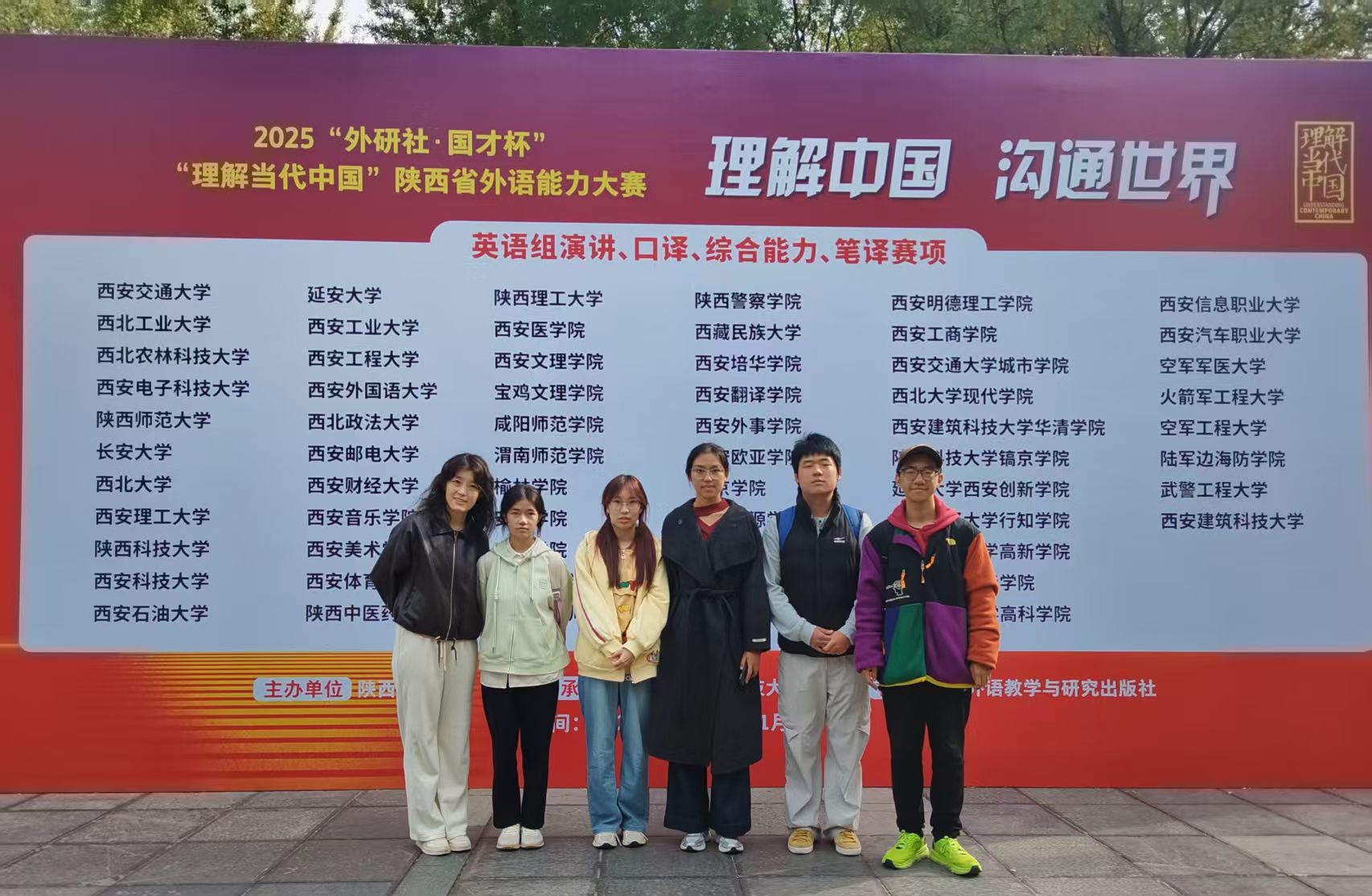 近日,2025“外研社・国才杯”“理解当代中国”全国大学生外语能力大赛陕西赛区比赛圆满收官。我校参赛学子在英语综合能力、英语笔译、英语演讲、多语种(日语)四大赛项中捷报频传,共斩获省级铜奖10项,充分展现了我校外语教学的成果与学子们的青春风采。