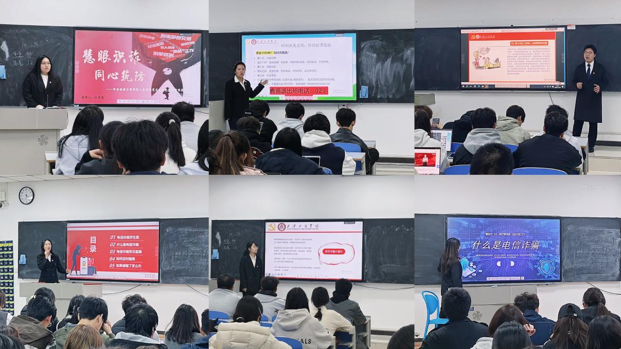 为深入贯彻落实党中央关于打击治理电信网络诈骗犯罪工作的重要指示精神,切实提升广大师生的防诈骗意识与自我保护能力。11月10日,人文学院党总支统筹部署,组织开展了以“反电信网络诈骗”为主题的专项系列活动。活动围绕“移动普及+集中宣讲+互动体验”三大板块,各党支部主动发力,党员化身宣讲团深入师生区域、联合授课分享心得、牵头互动模拟体验,以党建凝聚反诈合力,全面构建校园反诈防护网。