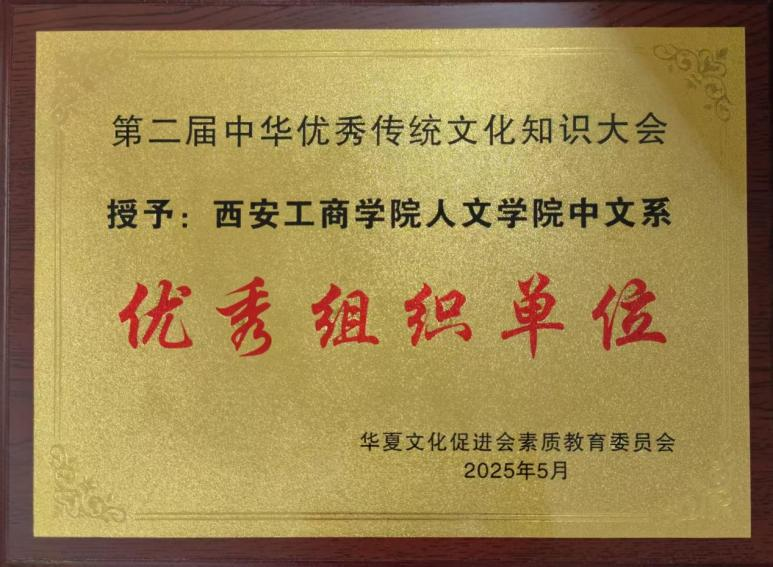 近日,由华夏文化促进会素质教育委员会主办的第二节中华优秀传统知识大会在全国范围内举行。在西安工商学院新视域文化产业学院和人文学院的共同组织下,我校人文学院凭借深厚的学术积淀与出色的组织能力成功承办本届赛事。大会将知识竞赛与中国古代文学课堂深度融合,实现了“以赛促教、以赛促学”的积极效果,并因组织有力、参与广泛,获得了主办单位的高度认可,获评“优秀组织单位”。