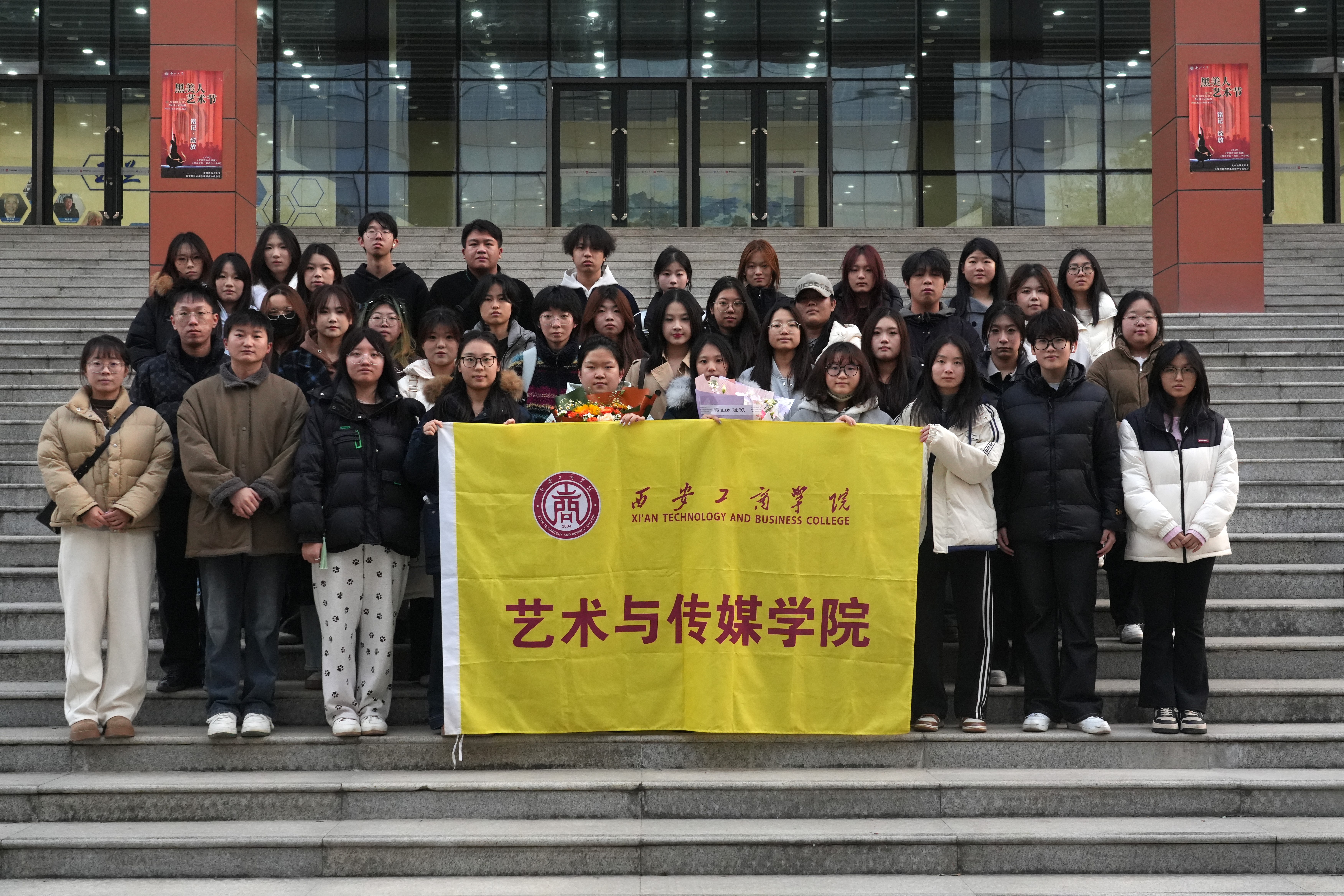 近日,应西北大学文学院邀请,艺术与传媒学院影视编导系导演专业学生、影制系影视创作训练营学员和指导教师共43名师生代表,一同前往西北大学长安校区,观赏西北大学举办的第三十八届“黑美人”话剧艺术节优秀剧目展演活动。观演学生由艺传学院辅导员张薇、于侗昕,影制系指导教师丁俊武组织带队,微影星火数字传媒产业学院给予资助。
