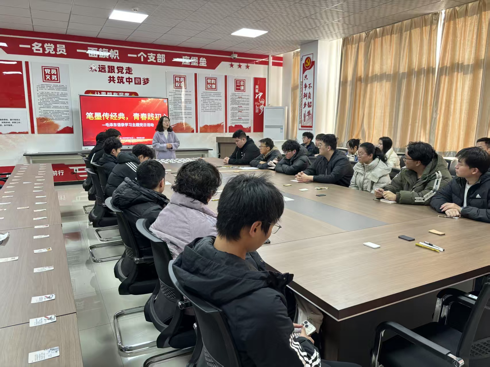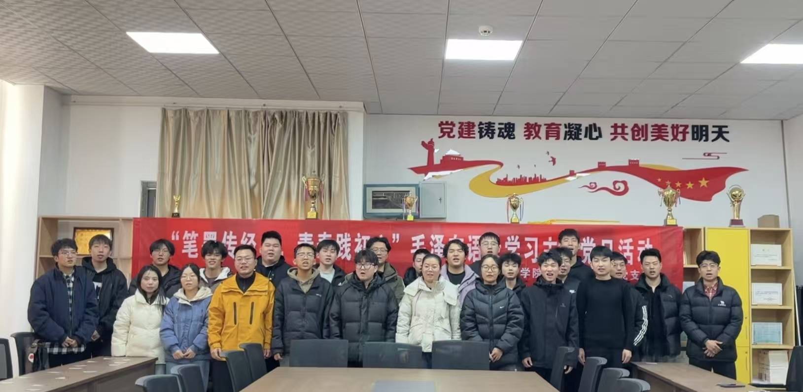 12月10日,机电工程学院学生第二、四党支部联合主办的“笔墨传经典,青春践初心”毛泽东语录学习主题党日活动在实验楼301顺利举行。参加活动的学生党员、发展对象及入党积极分子齐聚一堂,在沉浸式体验中感悟红色文化魅力,凝聚爱国爱党奋进力量。